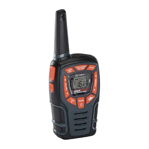 With a range of up to 10 km this Cobra walkie talkie offers excellent communication when hiking, climbing or cycling. This model is water-resistant with a built-in LED Flashlight and rubberized grips that provide enhanced functionality to keep you on the go. The VibrAlert® notifies you of incoming transmissions with enhanced vibrating feedback. Voice-activated transmission frees hands for other tasks. A total of 1963 channel combinations are available when the 16 channels are combined with the 121 privacy codes (38 CTCSS/104 DCS).