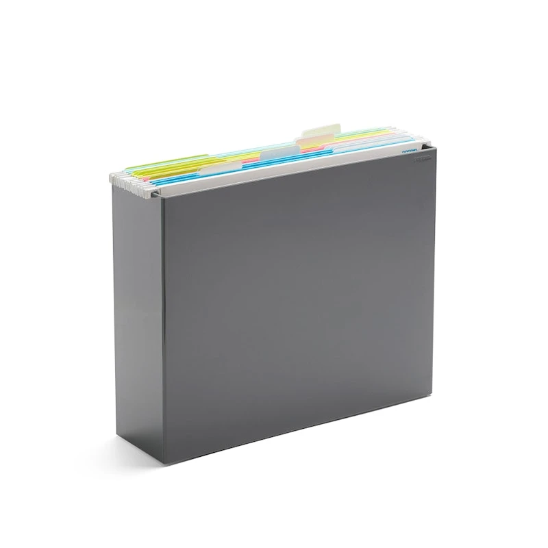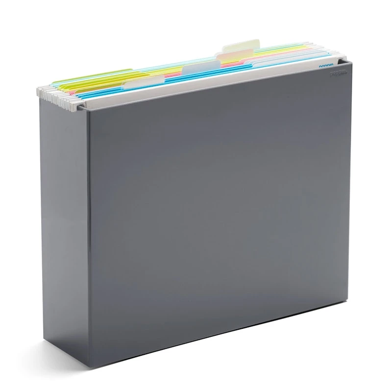 Designed to hold Hanging File Folders, our lacquer-like File Box gets docs off your workspace while keeping them close at hand. Whether you display it on your desk or use a set to color-code your cabinets, it’s the coolest new spot for your docs to hang.