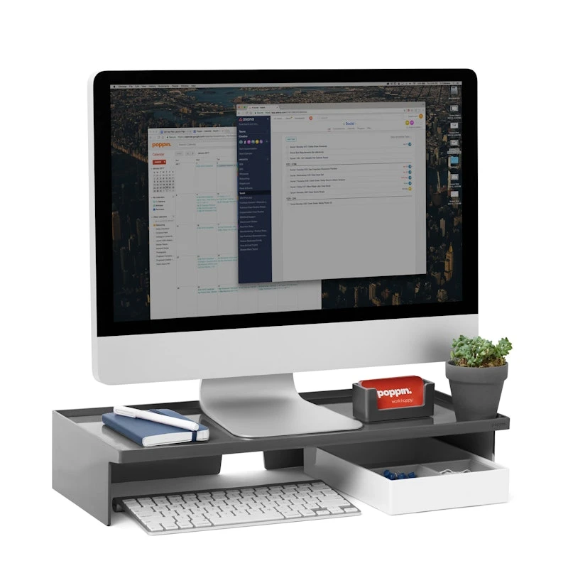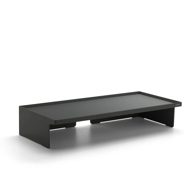 Our Monitor Riser takes your desktop to new heights. It not only kicks your computer screen up a notch, it also doubles as an all-purpose shelf, turning your desk into a duplex. Designed to fit with our Accessory, Letter, and Slim Trays, you can mix, match, and stack to bring your desk to a whole new level. A cable cutout in the back keeps cords out of your way, keeping you free from entanglements.