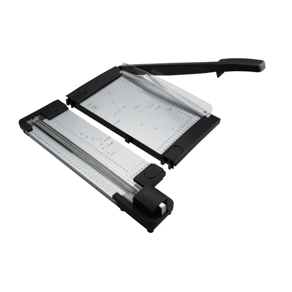 Paper cutter with guillotine function and 3 blades rotary cutting option all in one device.