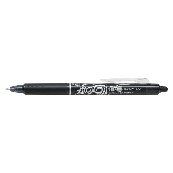 Write, delete, repeat with just one pen! New retractable version of FriXion. Smooth, dense erasable gel writing. Erases cleanly using the special end stud. Allows immediate over-writing using the same pen. 0.7mm tip and 0.35mm line width. Black ink. Pack of 12.