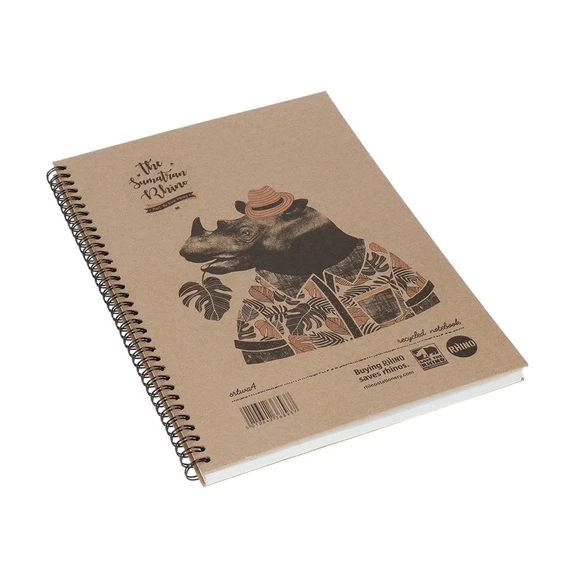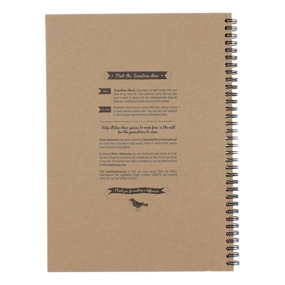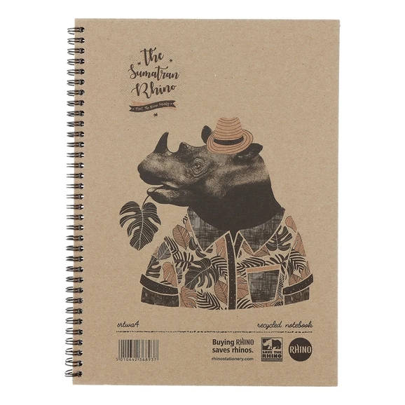 Rhino Recycled Notebooks are strong and resilient. The hardback cover is fun, illustrated with fascinating Rhino facts taking its inspiration from the breath-taking rhinos of the world. All with the added advantage of print using solvent free water based inks on the comfortable, lightweight cover. Every sale helps the Save the Rhino charity.