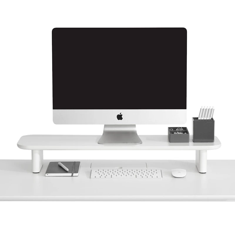 Our Key Monitor Riser takes your desktop to new heights, raising your monitor to the ideal height and doubling as an all-purpose shelf. It’s designed to sits perfectly over the built-in cable tray on our Key Desk, but it works everywhere you work, too!