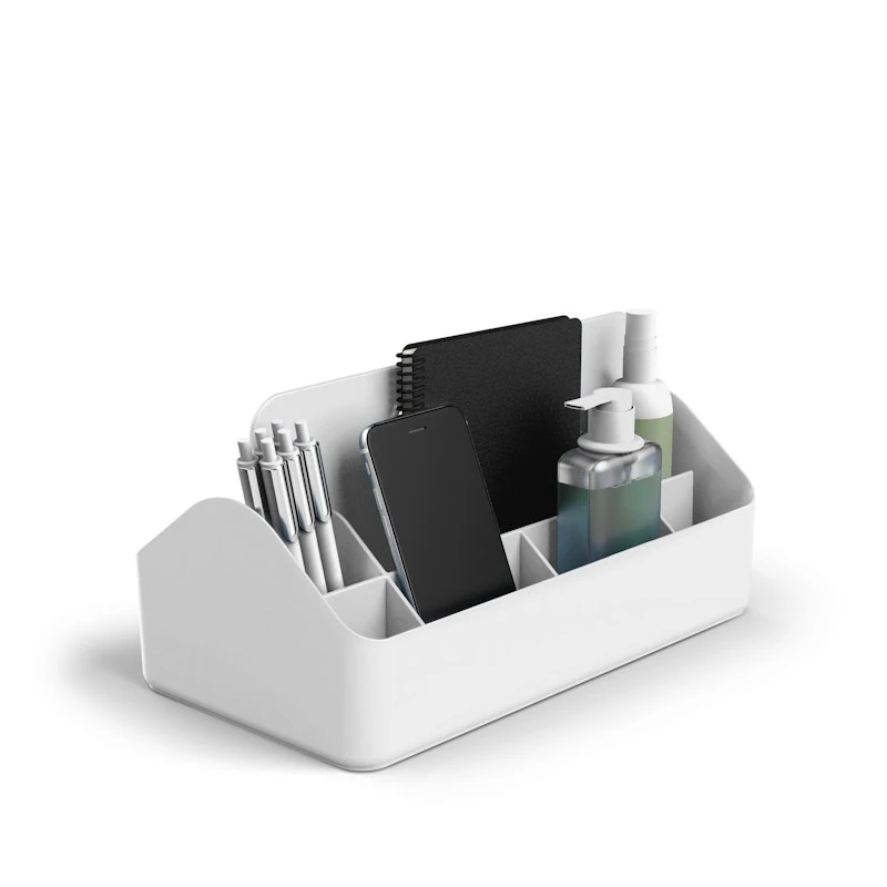 A handy storage caddy is a great way to keep frequently used items at your fingertips. Featuring 12 compartments in various sizes, this durable organizer can organize your PPE, office accessories, and other small items that take up valuable deskspace otherwise. The convenient carrying handle makes it easy to move your belongings from room to room. Don’t forget to save a few compartments for snacks.