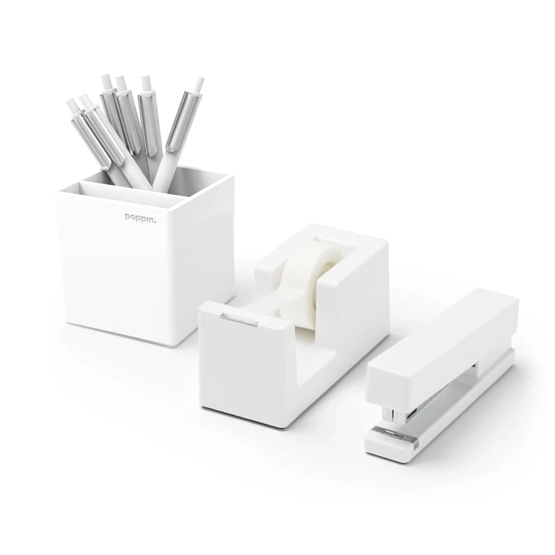 Everybody’s gotta start somewhere. So why not start at a decked-out desk? Featuring our favorite foursome—Stapler, Tape Dispenser, Pen Cup, and Set of 6 Signature Pens—the Starter Set has everything you need to get your office engines up and running.
